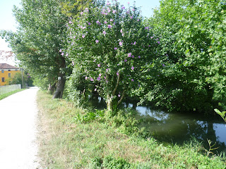 Nonostante un pò di polvere al passaggio di qualche vettura, c'è un notevole afflusso di persone che percorrono questo tratto di strada sterrata a piedi e in bici, quasi è diventata una pista ciclabile e pedonale e perchè no una palestra all'aperto dove si respira aria pulita e fresca.